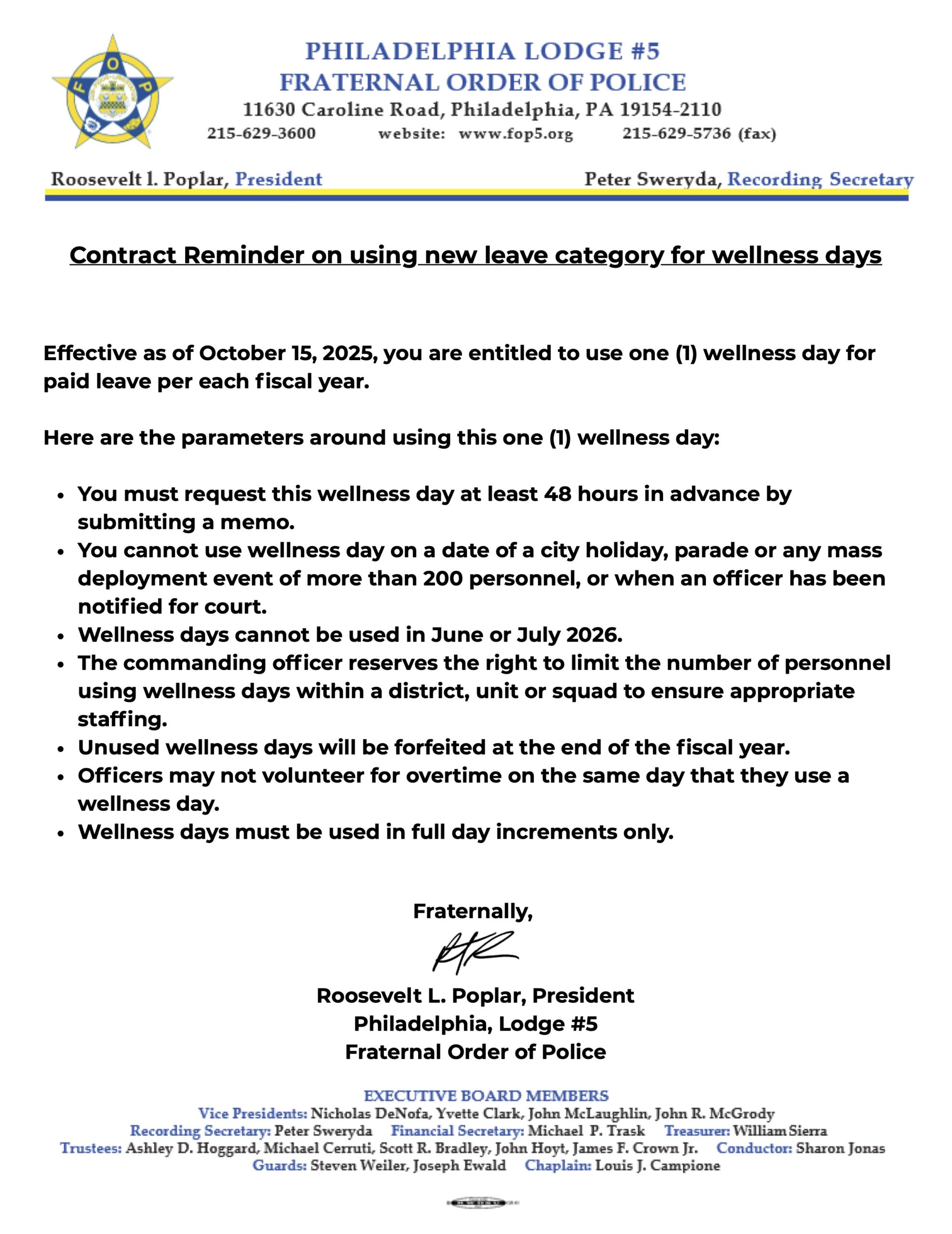 Here are official election results for our Executive Board from today Tuesday October 7, 2025. President Roosevelt Poplar and his slate have been elected to