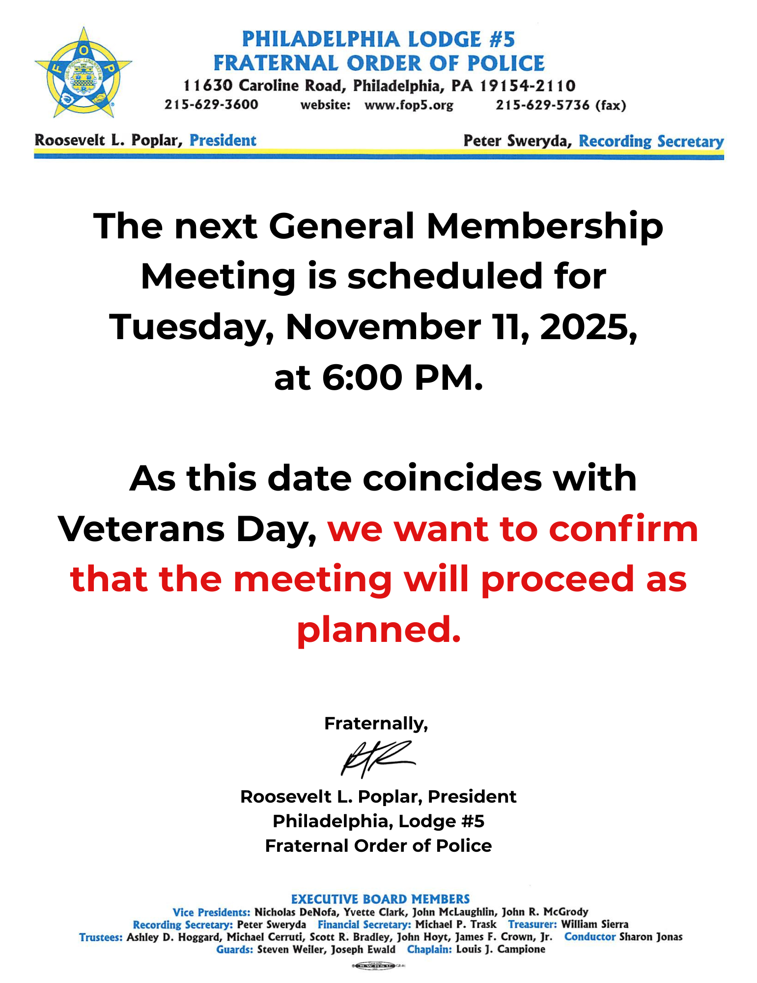 FOR MEMBERS ONLY- RESERVATIONS REQUIRED FREE EVENT- Accepting Donations for Annie’s Home for Women and Children FOP Philadelphia Lodge 5 11630 Caroline Road Philadelphia PA