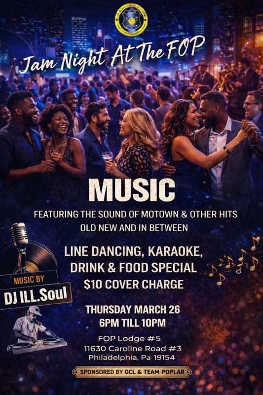 Join the Guardian Civic League for a night of dancing and fun at FOP Lodge #5, in the MGL Room, Thursday March 26th from 6 PM to 10 PM!