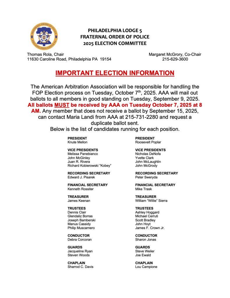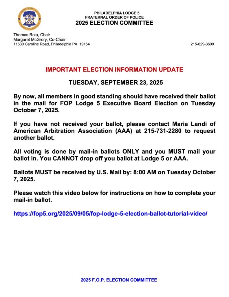 Update from FOP Lodge #5 Election Committee- 14 Days Till Election