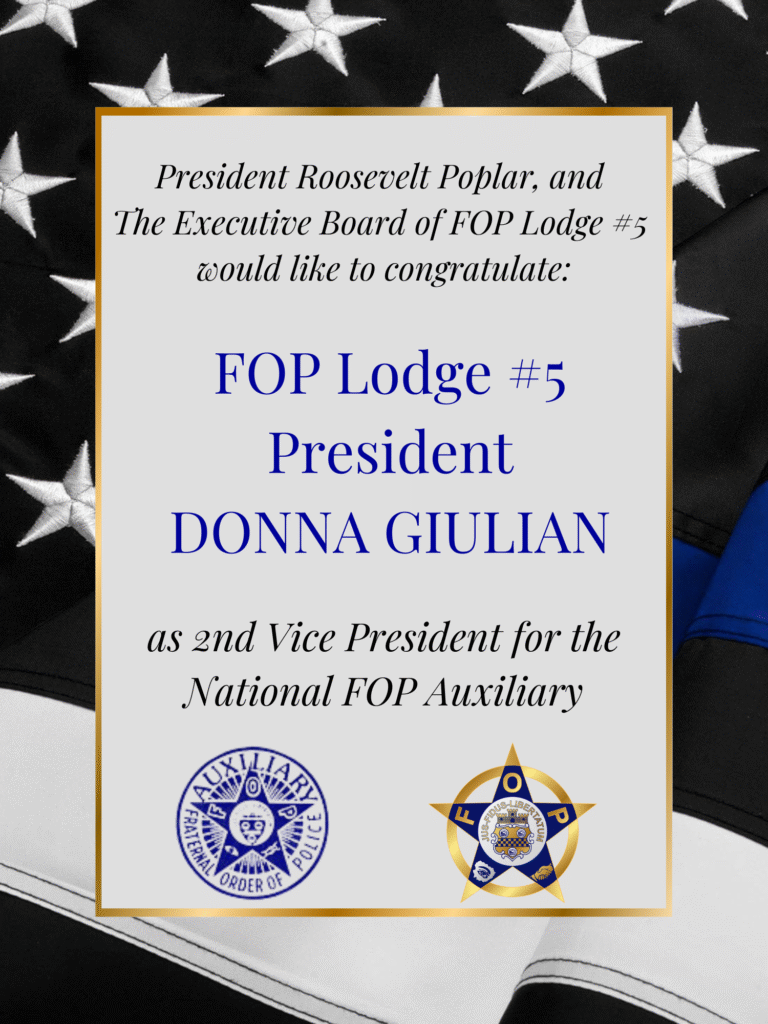 Congrats to FOP Lodge #5 Auxiliary President Donna Giulian