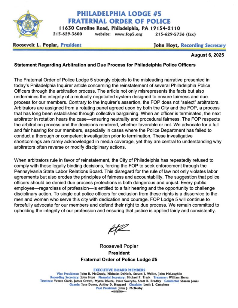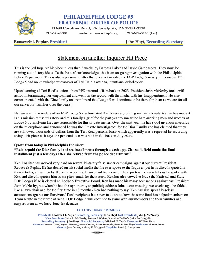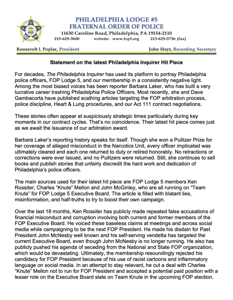 Statement on the latest Philadelphia Inquirer Hit Piece