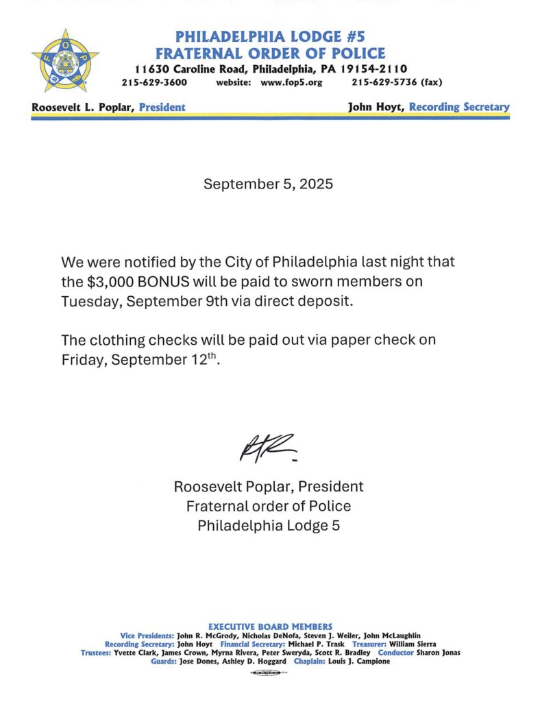$3K Bonus and $1,300 Clothing payments will be made the week of September 8, 2025 for ALL ACTIVES