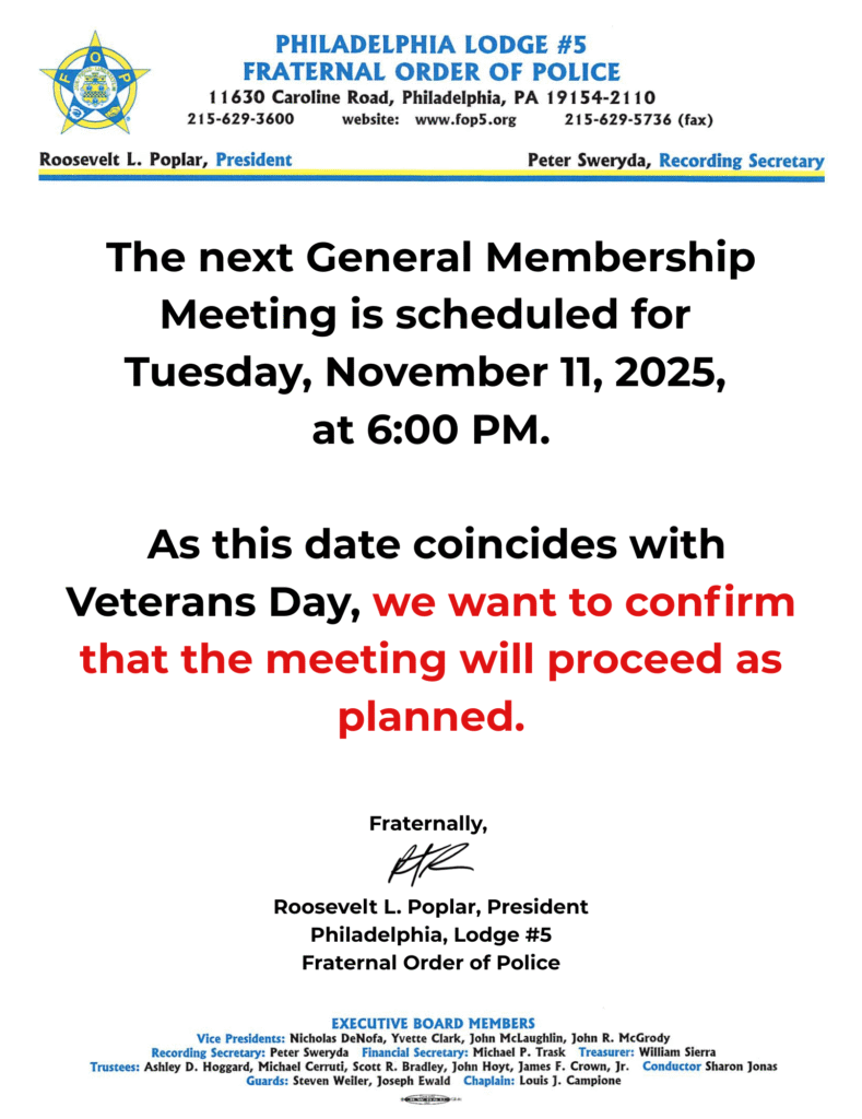 Attention All Active Members. Reminder to return your ballot to vote for our FOP Representative William (Willie) Sierra for Philadelphia ...