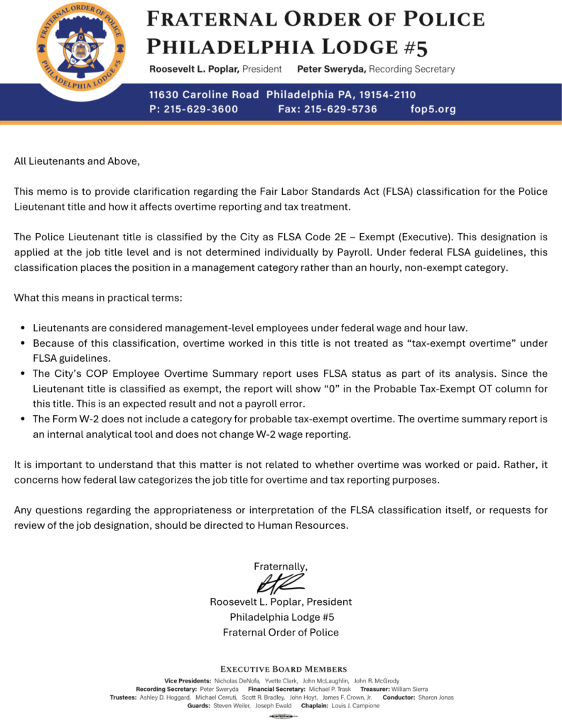 Police Lieutenant and Above, FLSA Classification and Overtime Reporting Guidance